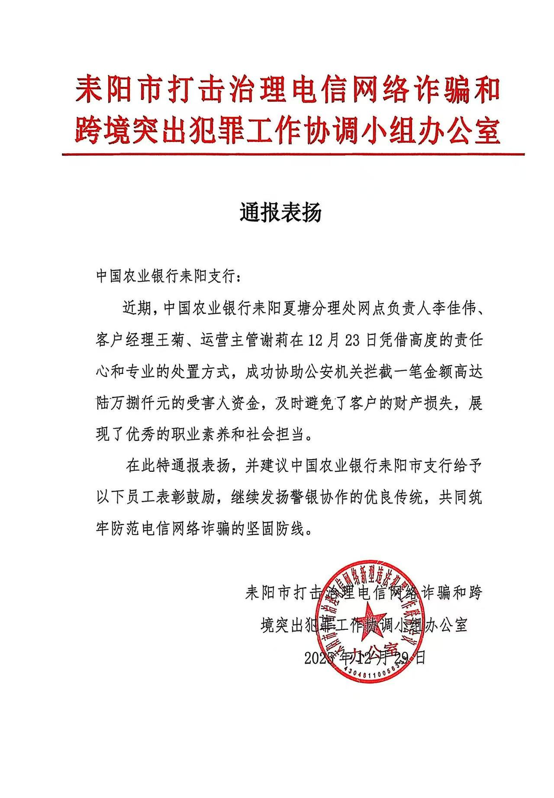 近日,農(nóng)行耒陽夏塘分理處與當(dāng)?shù)毓矙C(jī)關(guān)緊密協(xié)作,憑借高度的責(zé)任意識(shí)和專業(yè)的應(yīng)急處置能力,成功攔截一起電信網(wǎng)絡(luò)詐騙案件,為客戶挽回經(jīng)濟(jì)損失6.8萬元。該事件獲得當(dāng)?shù)赜嘘P(guān)部門通報(bào)表揚(yáng),展現(xiàn)了農(nóng)業(yè)銀行在筑牢金融安全防線、守護(hù)人民群眾財(cái)產(chǎn)安全方面的積極作為。