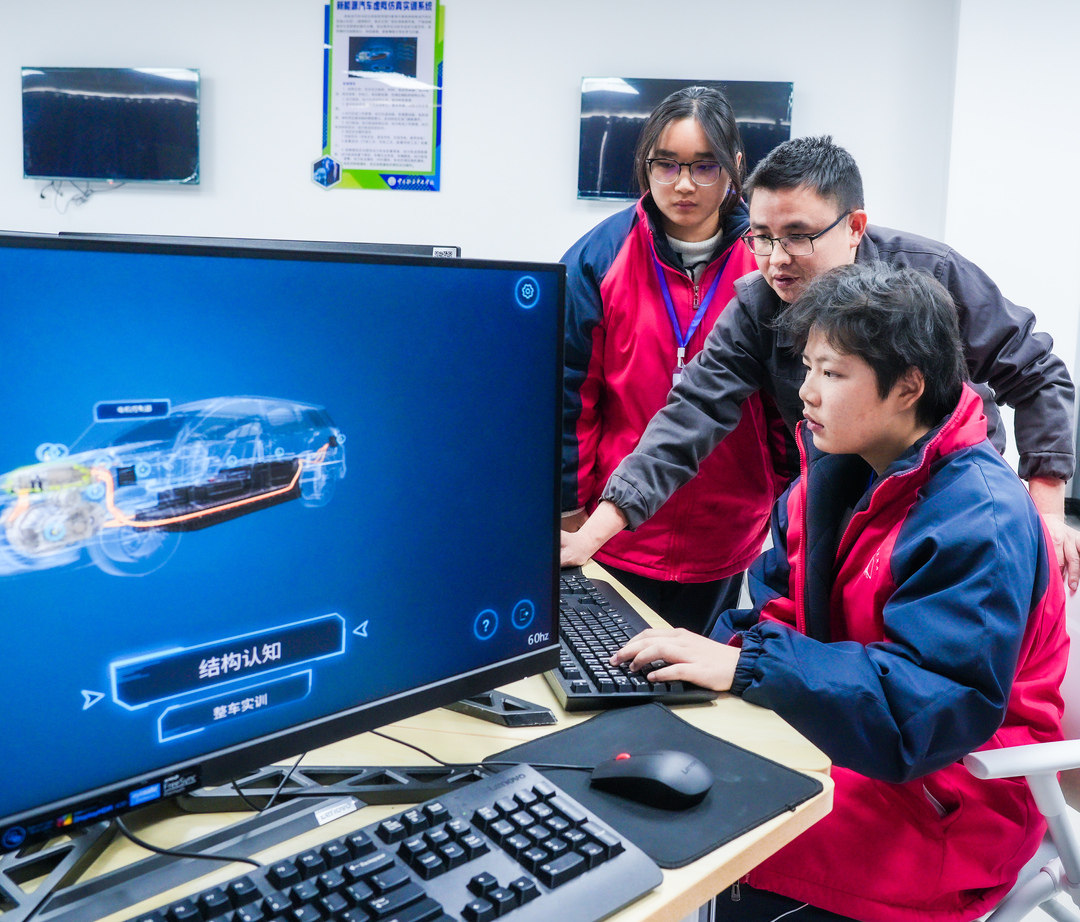 技術(shù)應(yīng)用直擊教學(xué)痛點(diǎn),在高風(fēng)險(xiǎn)實(shí)訓(xùn)領(lǐng)域的賦能更為顯著。新能源汽車檢測(cè)與維修教師賀杰指著屏幕上的裸眼3D模擬系統(tǒng)告訴記者,新能源汽車涉及高壓電,國(guó)家規(guī)定實(shí)操需持高壓電工證,而中職生大多未滿18歲,無法考取,這一度成教學(xué)中的“安全困局”。如今,有了虛擬實(shí)訓(xùn)系統(tǒng),學(xué)生可以先在虛擬系統(tǒng)中反復(fù)模擬拆裝、排故,熟練后再進(jìn)入實(shí)體車間?!凹却蠓档土税踩L(fēng)險(xiǎn),杜絕了安全事故的發(fā)生,又通過虛擬預(yù)演讓學(xué)生對(duì)各個(gè)零部件的組裝和配合了然于胸,教學(xué)效率顯著提升?!辟R杰說。
