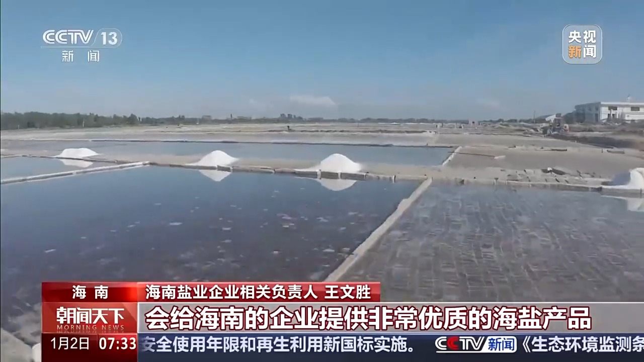 海南鹽業(yè)企業(yè)相關(guān)負(fù)責(zé)人 王文勝:我們現(xiàn)在已經(jīng)被納入海南首批自產(chǎn)貨物清單企業(yè),現(xiàn)在有4家企業(yè)正在合作。第二期整個(gè)鹽田大概有9000噸的年產(chǎn)量,會(huì)給海南的企業(yè)提供非常優(yōu)質(zhì)的海鹽產(chǎn)品。