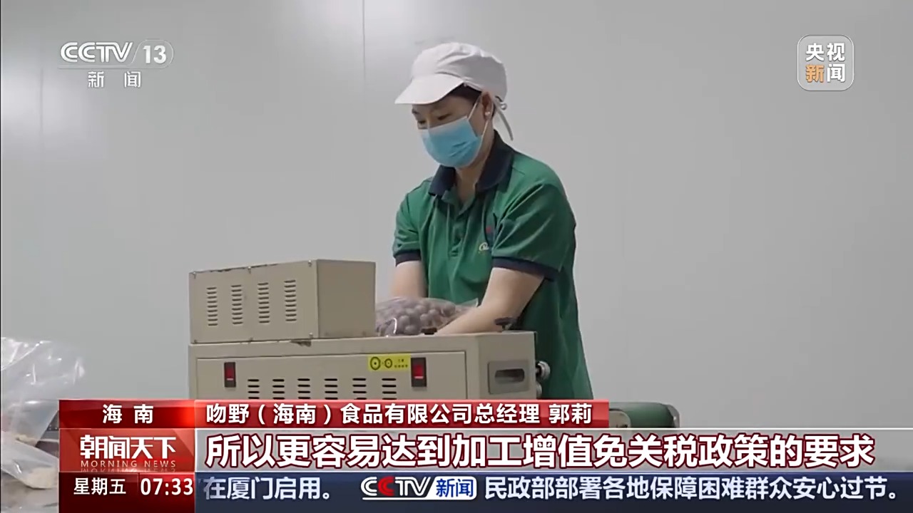 吻野(海南)食品有限公司總經(jīng)理 郭莉:比如夏威夷果,原來我們必須要賣到143元/斤才能享受免稅。封關(guān)之后,使用島內(nèi)的鹽,我們只需要賣130元/斤以上,所以更容易達(dá)到加工增值免關(guān)稅政策的要求。