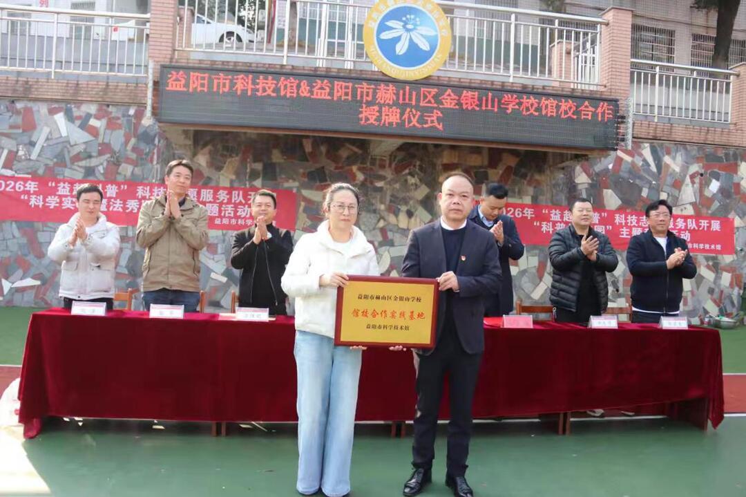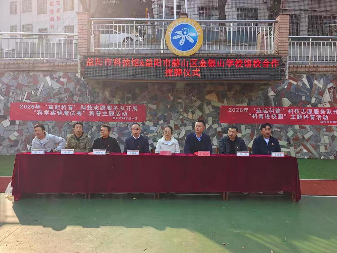 為積極響應(yīng)國家“科教興國”戰(zhàn)略,切實提升青少年科學素養(yǎng),2026年1月15日上午,益陽市科技館與益陽市赫山區(qū)金銀山學校“館校合作”授牌儀式暨科普進校園主題活動在學?;@球場舉行,共同開啟科技教育與校園文化深度融合的新篇章。