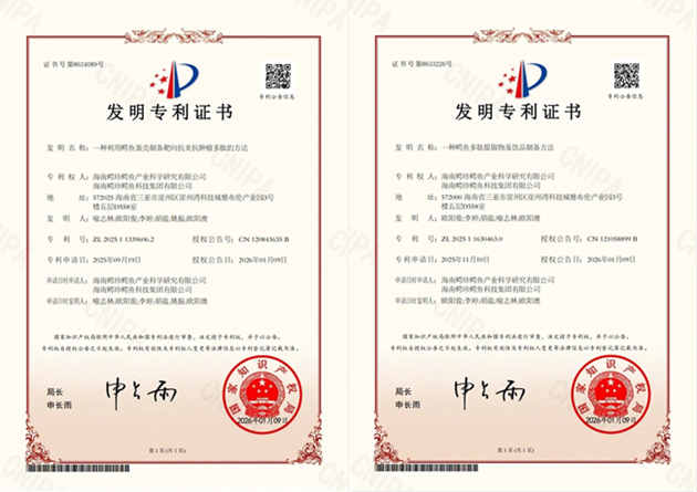 近日,國家知識產(chǎn)權(quán)局正式向 鱷珍集團 旗下海南鱷珍鱷魚產(chǎn)業(yè)科學(xué)研究有限公司、海南鱷珍鱷魚科技集團有限公司授予兩項國家發(fā)明專利,分別為《一種鱷魚多肽提取物及飲品制備方法》(專利號:ZL202511630463.0)和《一種利用鱷魚蛋殼制備靶向抗炎抗腫瘤多肽的方法》(專利號:ZL202511339606.2)。