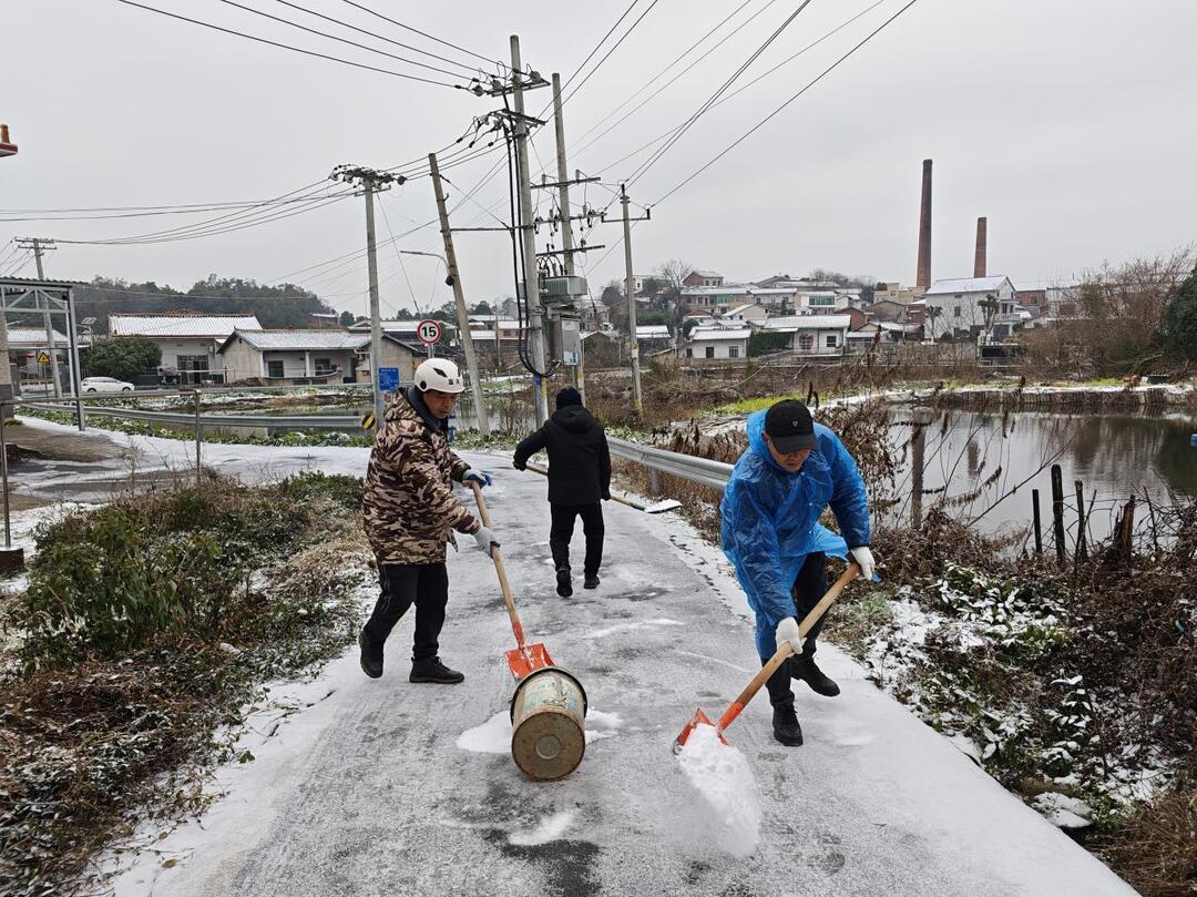 社區(qū)黨支部書記鄧勇統(tǒng)籌部署、合理分工,支居兩委成員率先垂范,與工作人員、黨員志愿者聚焦主干道、路口斜坡等易滑險段,開展集中清雪除冰。雷鋒哨網格員李耀偉主動請纓,扛起鐵鍬奮戰(zhàn)一線,鏟雪破冰、撒布融雪鹽,細致排查隱蔽結冰點,確保無死角無隱患。鄰里“三長”動員居民參與,群眾自發(fā)加入,干群同心筑牢出行安全屏障。
