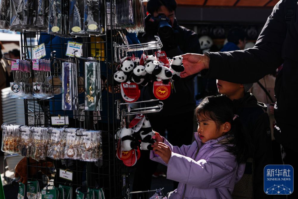 1月25日,游客在日本東京上野動(dòng)物園挑選大熊貓紀(jì)念商品。