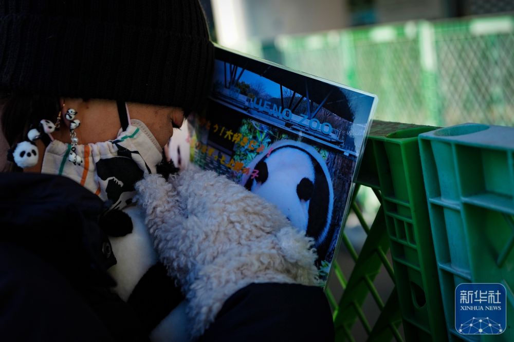 1月25日,在日本東京上野動(dòng)物園,游客手持印有大熊貓“曉曉”和“蕾蕾”照片的小旗子。