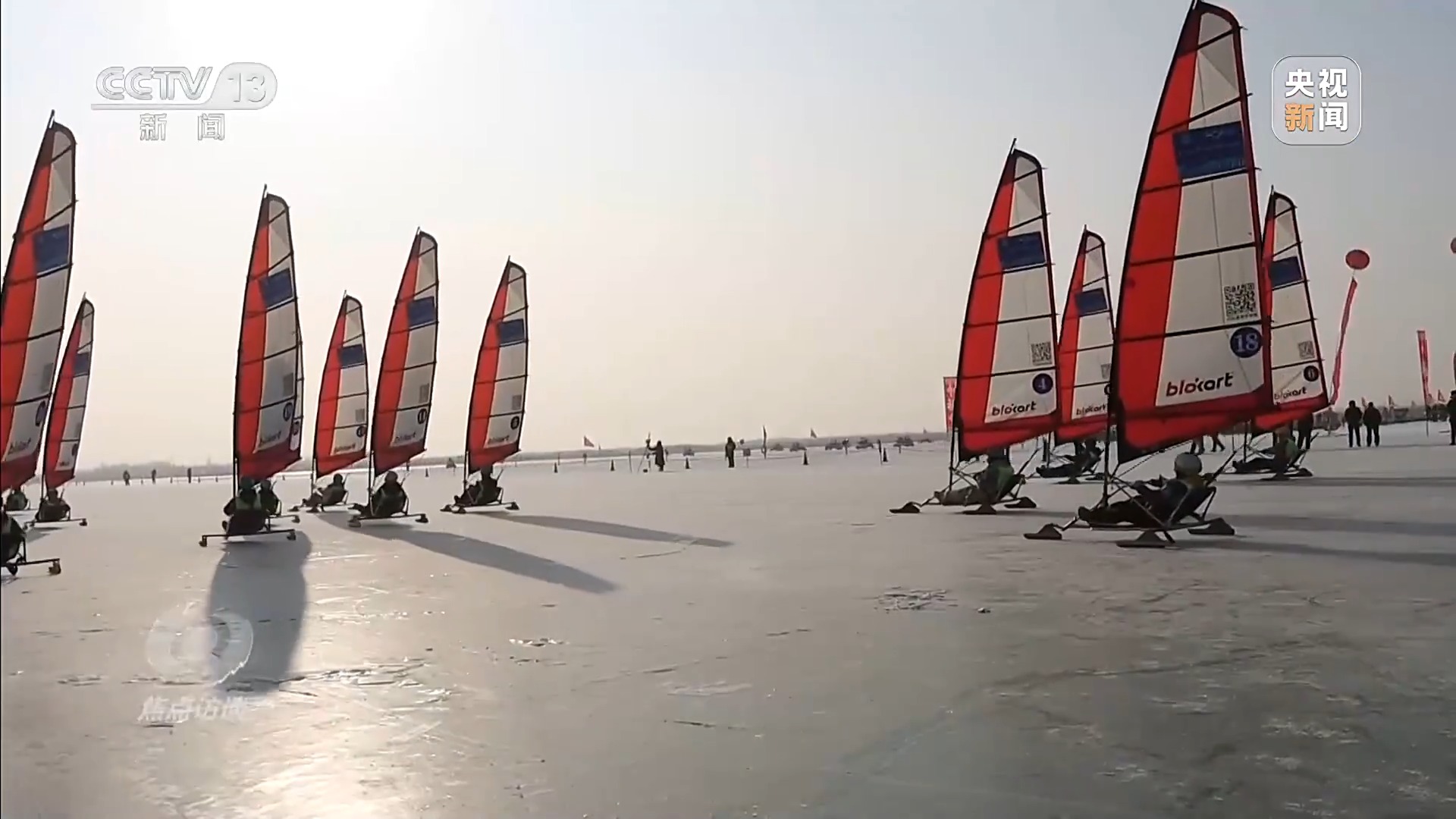 記者抵達(dá)時,正好趕上博斯騰湖第十八屆冰雪季開幕,同時也是冰上帆船運動首次在這里“揚帆起航”。