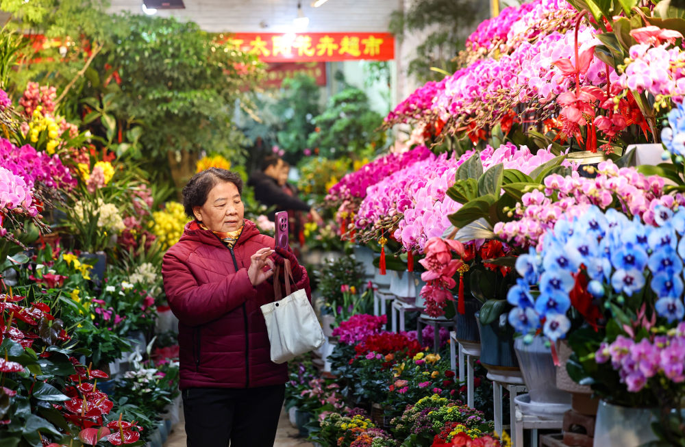 ??1月24日,在甘肅省蘭州市城關(guān)區(qū)芳草園花卉市場,市民選購花卉。新華社發(fā)(侯崇慧攝)