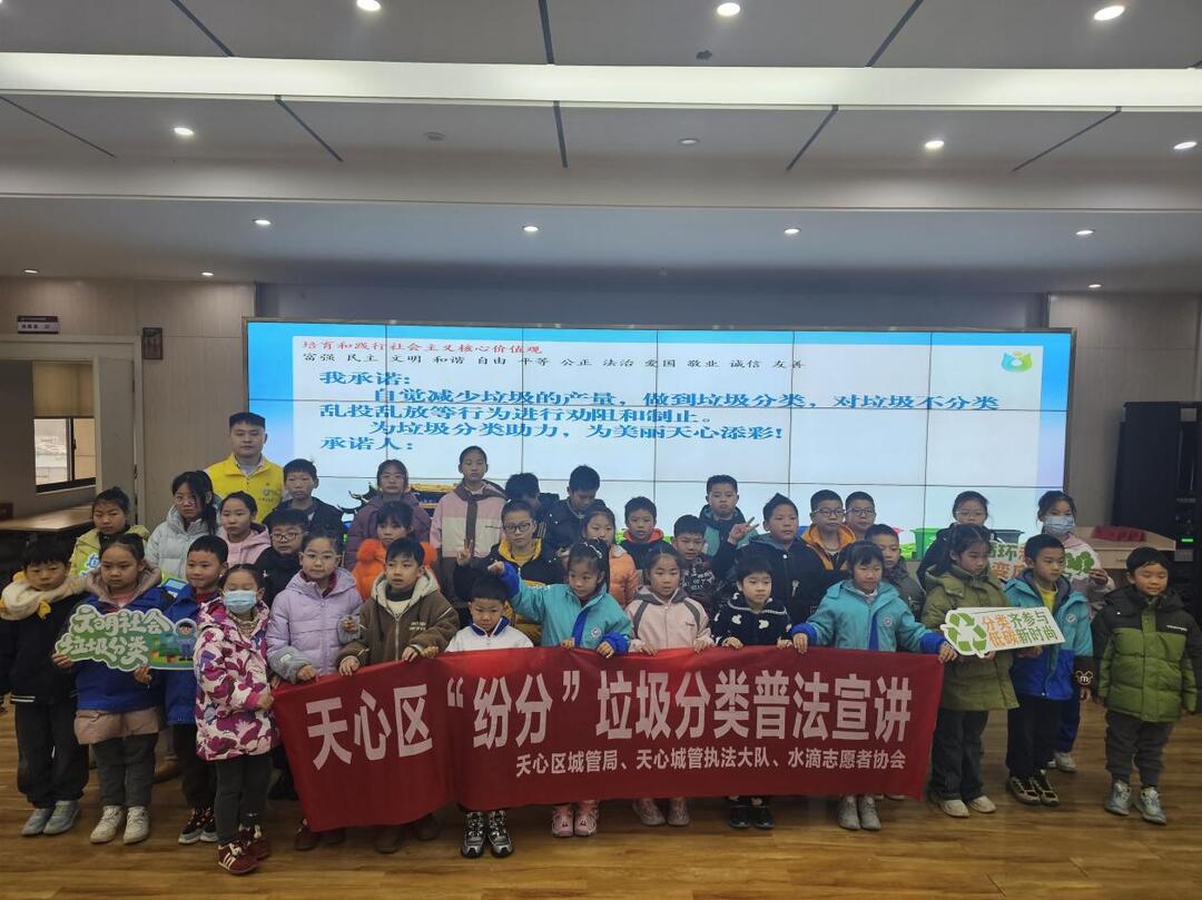 “同學(xué)們,你們知道過(guò)期藥品屬于什么垃圾嗎?”“廢舊電池應(yīng)該扔進(jìn)哪個(gè)顏色的垃圾桶?”活動(dòng)現(xiàn)場(chǎng),來(lái)自天心區(qū)城管執(zhí)法大隊(duì)的普法宣講員楊志威,通過(guò)生動(dòng)形象的PPT展示、趣味十足的互動(dòng)問(wèn)答,將枯燥的垃圾分類(lèi)知識(shí)轉(zhuǎn)化為孩子們易于理解和接受的內(nèi)容。